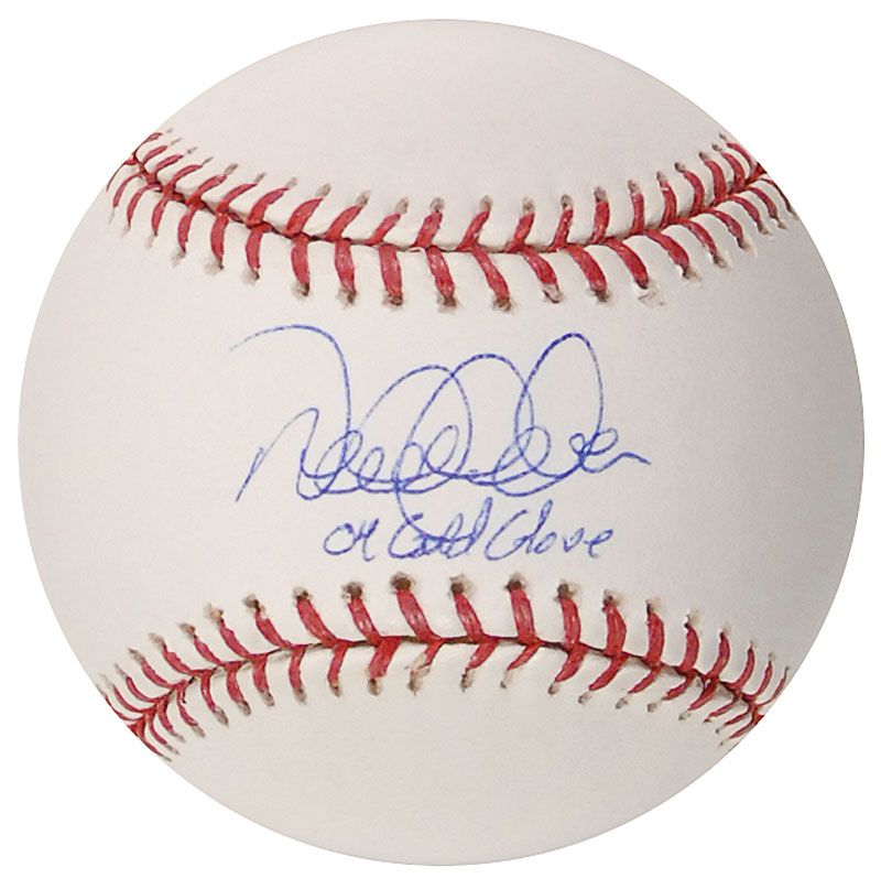 Official Rawlings Major League baseball signed in blue ballpoint on the sweet spot, “Derek Jeter, 04 Gold Glove.” In fine condition, with a Steiner Sports label affixed to a side panel. Accompanied by a certificate of authenticity from Steiner Sports.