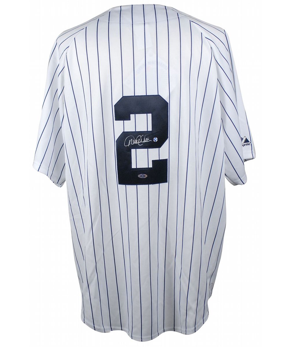 Official Majestic replica New York Yankees baseball jersey, with sewn on letters and numbers, signed in silver ink on the number on the back. In fine condition, with a Steiner Sports label affixed to the number (certificate of authenticity not present).