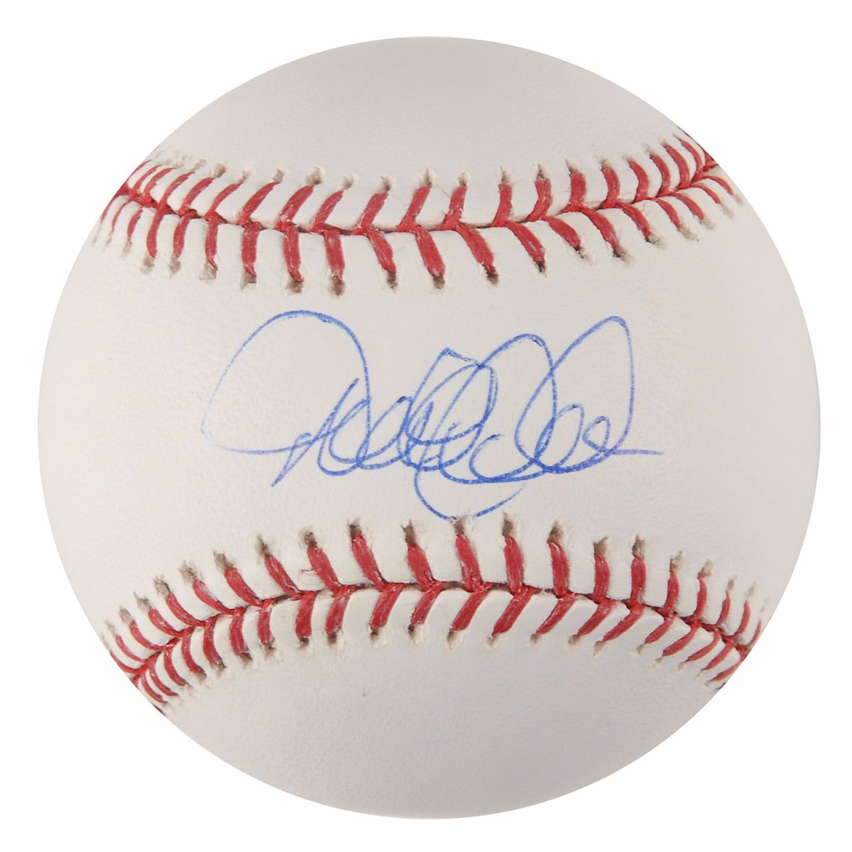 Official Rawlings Major League (Selig) baseball signed in blue ballpoint on the sweet spot. In fine condition, with MLB and Steiner Sports labels affixed to the rear. Accompanied by a certificate of authenticity from Steiner.