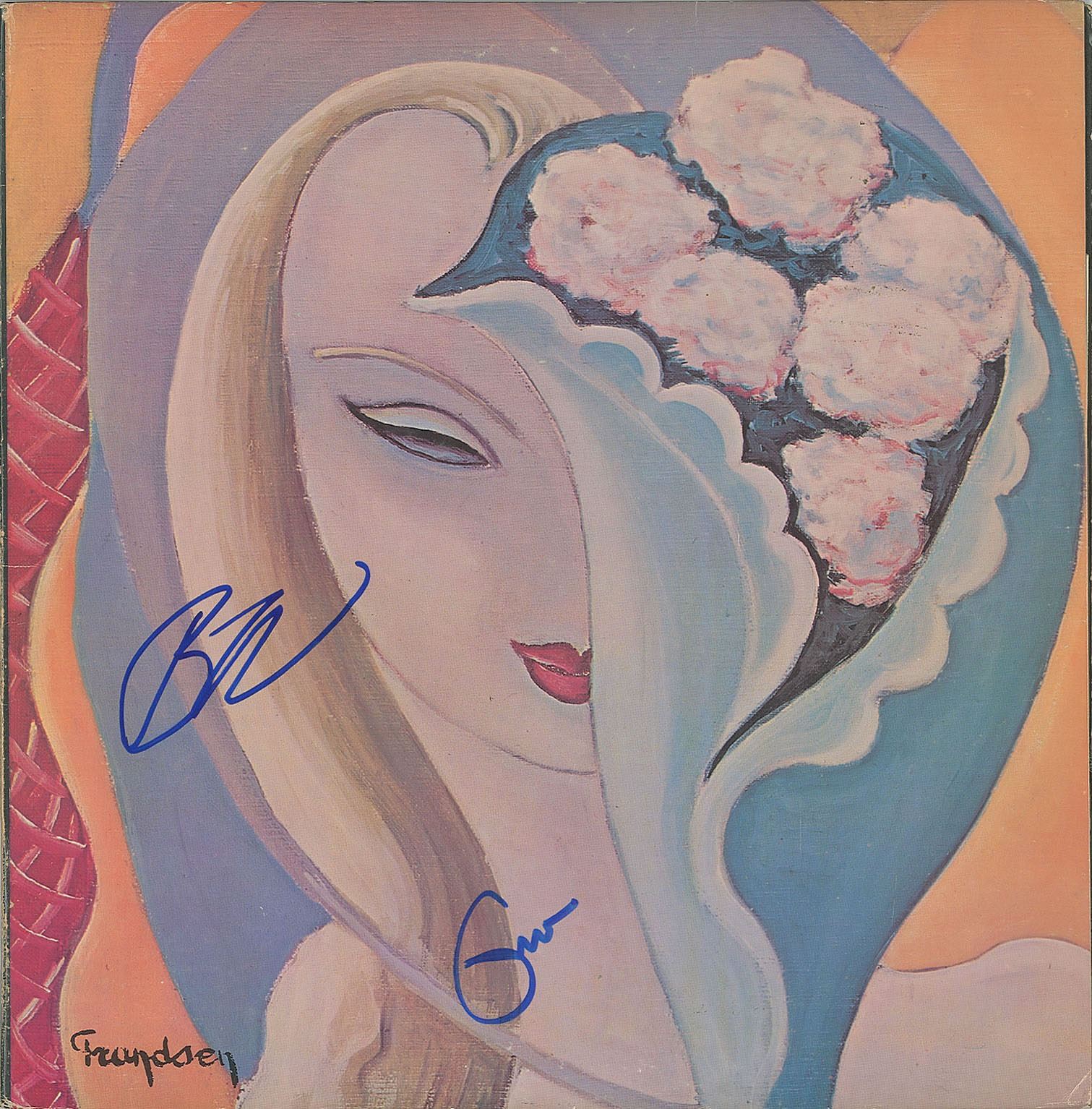 Layla and Other Assorted Love Songs album signed on the front cover in blue felt tip by Eric Clapton and Bobby Whitlock. In fine condition. The record is included.