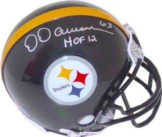 Dermontti Dawson was named to seven straight Pro Bowls from 1992 to 1998 and was a six-time AP First Team All-Pro. In 1993, he was named co-AFC Offensive Lineman of the Year by the NFLPA and in 1996 he was named the NFL Alumni’s Offensive Lineman of the Year. He played in 170 consecutive games, the second most in Steelers history. He was elected to the Pro Football Hall of Fame in 2012. Dermontti Dawson has hand signed this Pittsburgh Steelers Replica Mini Helmet and has added the inscription, "HOF 12." Leaf or MAB Hologram and Certificate of Authenticity from Athlon Sports.