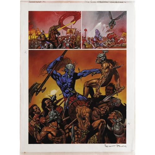 <B>Dermot Power - 2000 A.D. #894, Splash page 30 Original Art (Fleetway, 1994).</B></I> "Star Wars," "Harry Potter," and "Batman Begins" conceptual illustrator, Dermot Power, illustrates this page from the fourth episode of "Slaine: Queen of Witches," written by Pat Mills, which ran for eight episodes (Programs #889 - 896). Rendered in mixed media on illustration paper, the art has a 12" x 16" image area, and is in Excellent condition. Signed by Dermot Power at the lower right.<BR><BR><b>Shipping:</b> Small Flat (<a target="_blank" href="http://www.heritageauctions.com/common/shipping.php">view shipping information</a>)