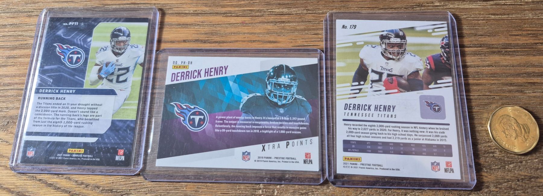 Trio of Derrick Henry inserts including Power Formulas, Power House, and Extra Points parallels. All cards in excellent to mint condition.