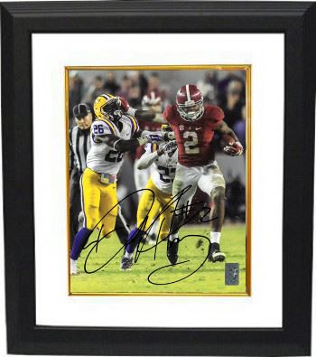 Derrick Henry was destined for college stardom after his 12,124 career rushing yards and 153 career touchdowns in high school alone. Taking over as the lead back in the Crimson Tide backfield in 2015, Henry broke out in a huge way, running for 2,219 yards and 28 touchdowns, leading Alabama to the 2016 CFP National Championship. With his sights set on the NFL, Henry has declared for the 2016 NFL Draft and was drafted by the Tennessee Titans in the 2nd Round. Derrick Henry has hand signed this Alabama Crimson Tide 8x10 Photo #2. Henry Hologram and Certificate of Authenticity from Athlon Sports Collectibles. Custom White Mat and Premium Black Color Framed as shown.