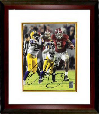 Derrick Henry was destined for college stardom after his 12,124 career rushing yards and 153 career touchdowns in high school alone. Taking over as the lead back in the Crimson Tide backfield in 2015, Henry broke out in a huge way, running for 2,219 yards and 28 touchdowns, leading Alabama to the 2016 CFP National Championship. With his sights set on the NFL, Henry has declared for the 2016 NFL Draft and was drafted by the Tennessee Titans in the 2nd Round. Derrick Henry has hand signed this Alabama Crimson Tide 8x10 Photo #2. Henry Hologram and Certificate of Authenticity from Athlon Sports Collectibles. Custom White Mat and Premium Mahogany Color Framed as shown.