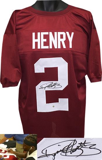 Derrick Henry was destined for college stardom after his 12,124 career rushing yards and 153 career touchdowns in high school alone. Taking over as the lead back in the Crimson Tide backfield in 2015, Henry broke out in a huge way, running for 2,219 yards and 28 touchdowns, leading Alabama to the 2016 CFP National Championship. With his sights set on the NFL, Henry has declared for the 2016 NFL Draft and was drafted by the Tennessee Titans in the 2nd Round. This is a Derrick Henry Alabama Crimson Tide signed Maroon unlicensed custom-prostyle jersey with twill stitched nameplate and numbers #2. Photo of the Signing, Steiner Sports Hologram and Certificate of Authenticity. Size XL
