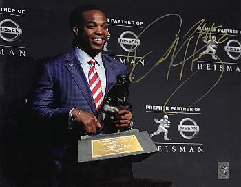 Derrick Henry was destined for college stardom after his 12,124 career rushing yards and 153 career touchdowns in high school alone. Taking over as the lead back in the Crimson Tide backfield in 2015, Henry broke out in a huge way, running for 2,219 yards and 28 touchdowns, leading Alabama to the 2016 CFP National Championship. With his sights set on the NFL, Henry has declared for the 2016 NFL Draft and was drafted by the Tennessee Titans in the 2nd Round. Derrick Henry has hand signed this Alabama Crimson Tide 11X14 Photo #2 holding the Heisman Trophy. Henry Hologram and Certificate of Authenticity from Athlon Sports Collectibles.