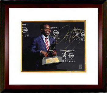 Derrick Henry was destined for college stardom after his 12,124 career rushing yards and 153 career touchdowns in high school alone. Taking over as the lead back in the Crimson Tide backfield in 2015, Henry broke out in a huge way, running for 2,219 yards and 28 touchdowns, leading Alabama to the 2016 CFP National Championship. With his sights set on the NFL, Henry has declared for the 2016 NFL Draft and was drafted by the Tennessee Titans in the 2nd Round. Derrick Henry has hand signed this Alabama Crimson Tide 11X14 Photo #2 holding the Heisman Trophy. Henry Hologram and Certificate of Authenticity from Athlon Sports Collectibles. Custom White Mat and Premium Mahogany Color Framed as shown.