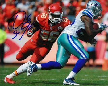 Derrick Johnson was drafted 15th overall by the Kansas City Chiefs. Johnson started every game for the Kansas City Chiefs in 2005, becoming the first Chiefs linebacker in 20 years to start all 16 games of his rookie campaign. He was subsequently awarded the Mack Lee Hill Award by the Chiefs (presented to the most outstanding rookie). In Week 17 of the 2009 NFL season, Johnson had an NFL-record tying two interceptions returned for touchdowns. Derrick Johnson has hand autographed this Kansas City Chiefs 8x10 Photo. Certificate of Authenticity from Athlon Sports.