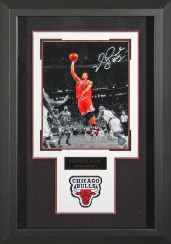 Derrick Rose became the first guard to be drafted first overall in the NBA draft since Allen Iverson in 1996 and would subsequently win NBA Rookie of the Year. In 2011, Rose was named the NBA Most Valuable Player, becoming the youngest player to win this award at 22 years and 6 months old.Derrick Rose has hand signed this Chicago Bulls 11x14 Photo. Premium Custom Wood Framed as shown with plaque and official Detroit Lions team patch. Overall Framed Size: 22 x 32". Witnessed, Examined, and Certified Authentic (Lifetime) by Millionaire Gallery, Inc.