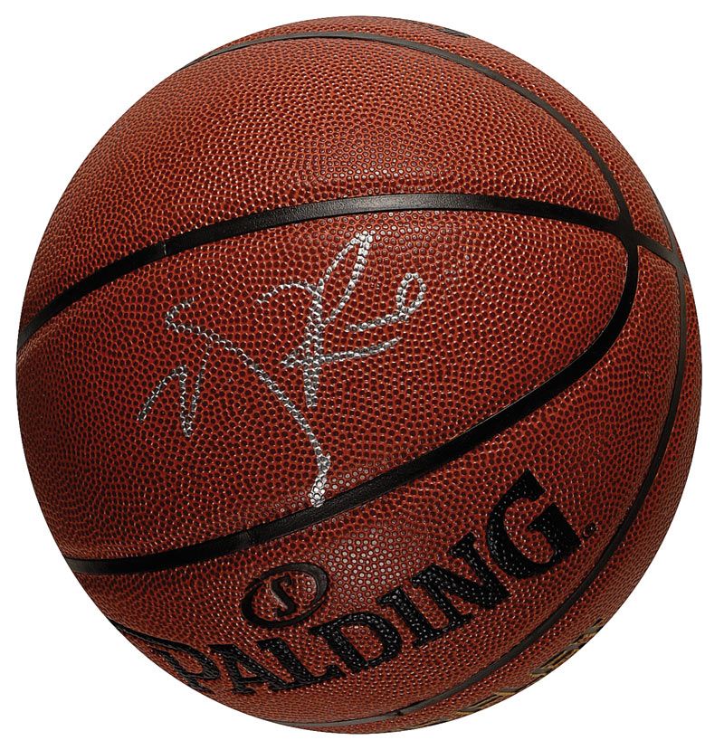 Official Spalding Never Flat basketball quickly signed in silver ink on a side panel. In fine condition. Accompanied by a photo taken at time of signing.
