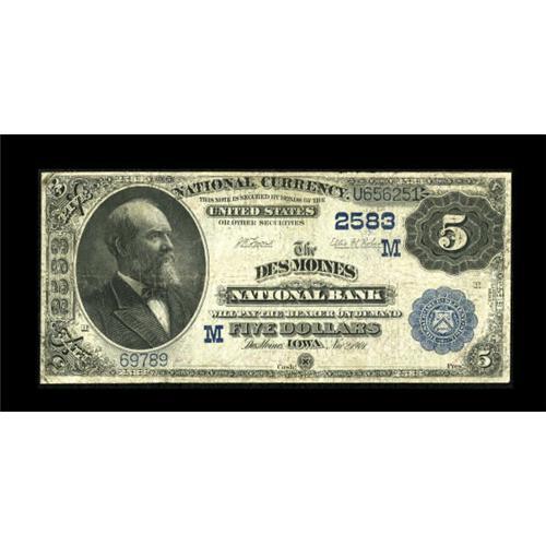 <B>Des Moines, IA</B></I> - $5 1882 Value Back Fr. 574 <B>The Des Moines NB</B></I> Ch. # (M)2583<BR> Evenly circulated with sound paper. <B>Very Good.</B></I><BR><BR><b>Shipping:</b> Coins & Currency (<a target="_blank" href="http://www.heritageauctions.com/common/shipping.php">view shipping information</a>)