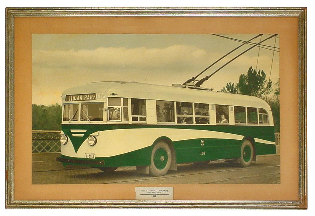 Des Moines electric "Oak Park" bus lobby sign from the J.G. Brill Co.-Phila., dated 1938, Exc cond,