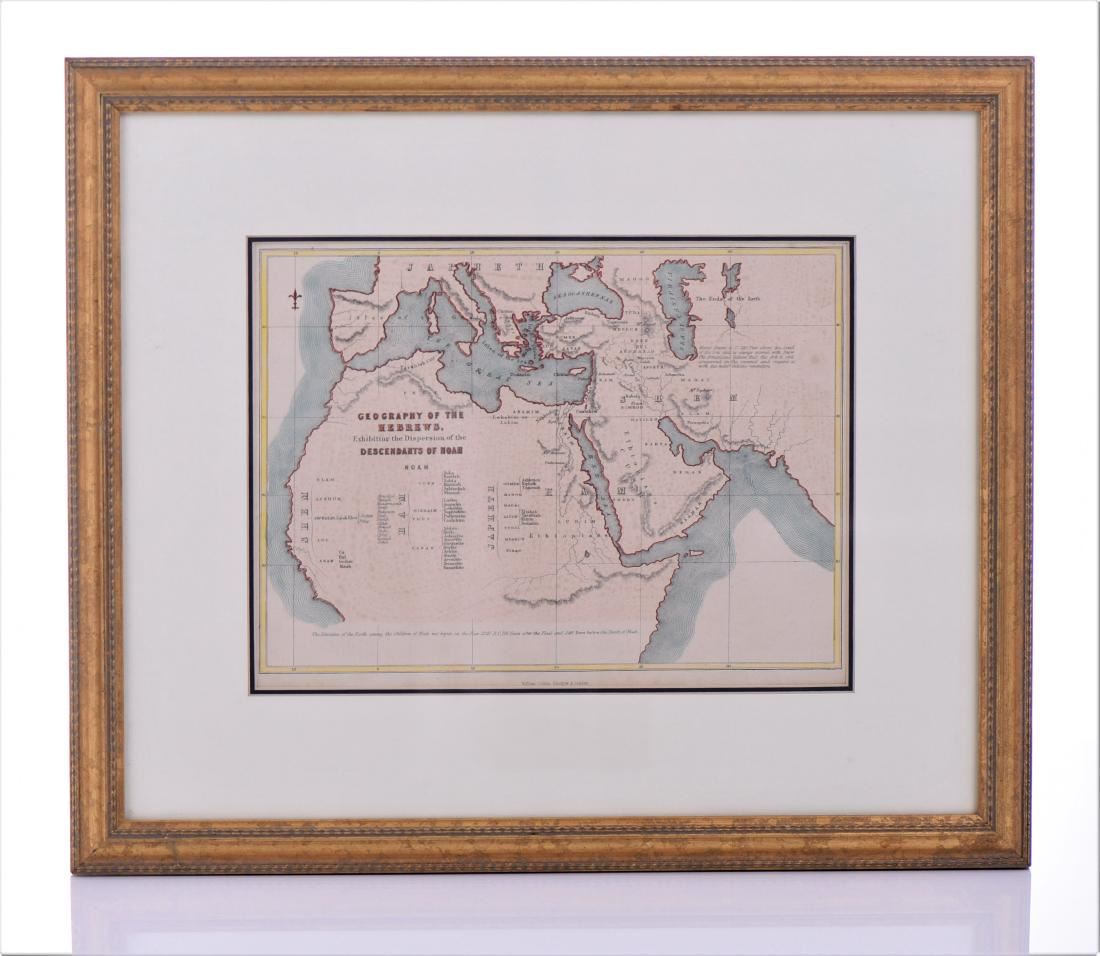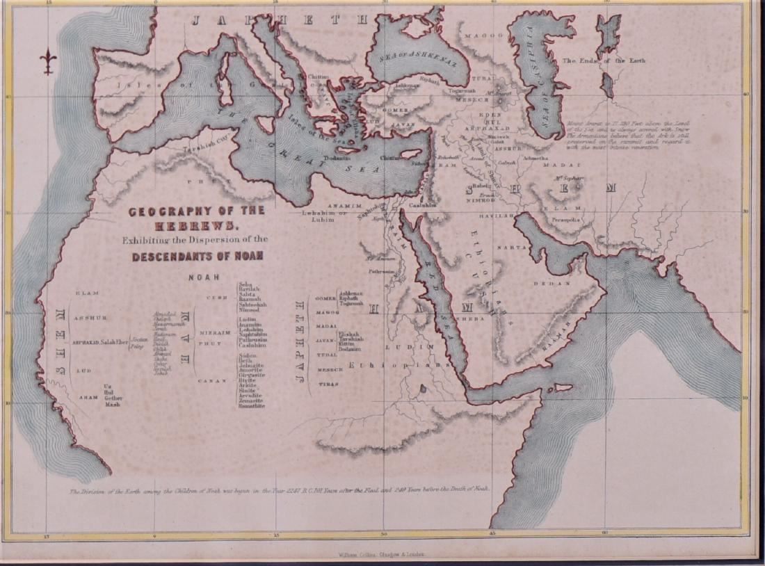 Descendants of Noah Ca. 1850 Rare Copper Plate Engraving, Hand Colored. Geography of the Hebrews