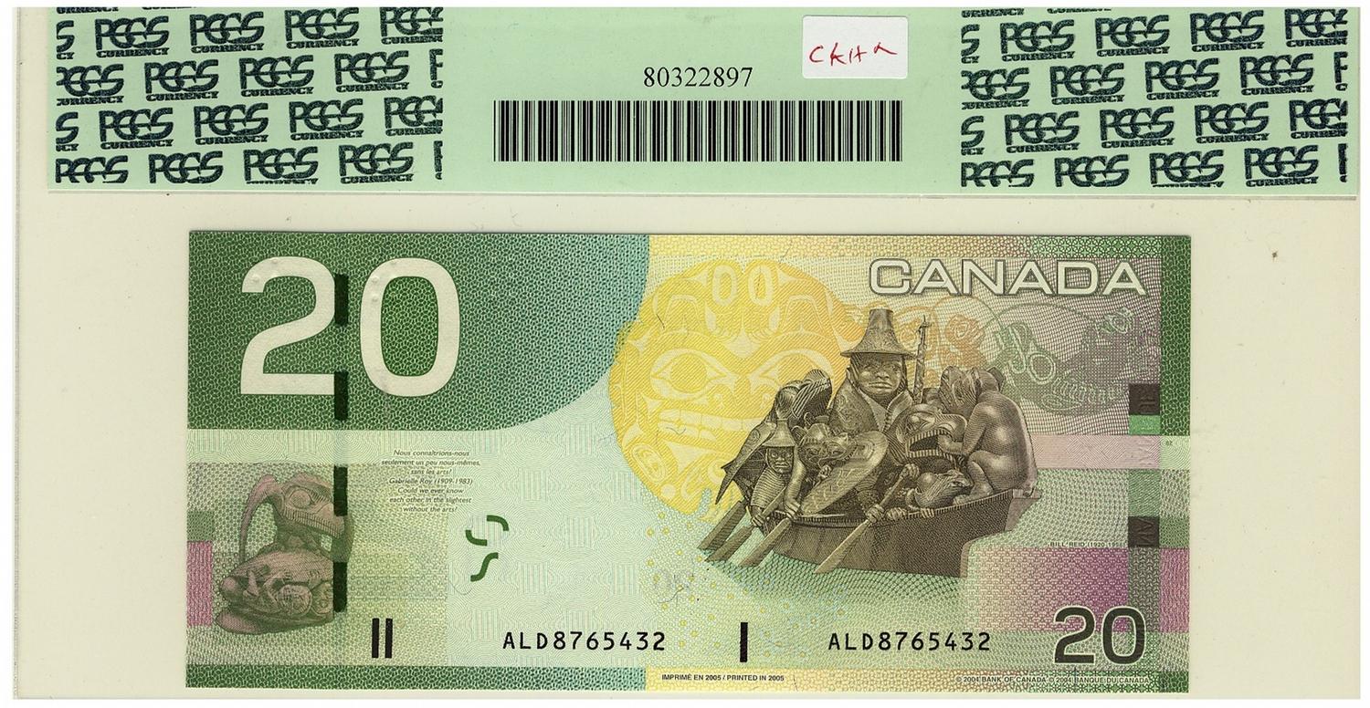 Descending Ladder 2004 $20 BC-64a #ALD8765432, PCGS Gem UNC66PPQ. Backwards ladder issue.