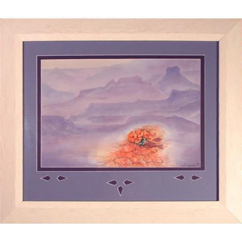 This terrific southwestern themed watercolor was brought to life through the passionate effort of gifted artist R. W. MacIsaac. The warm flowers that sit in the foreground are captivating in a hazy environment of cool, distant blue mountains. The detail that has been incorporated into the rendering of the tiny orange blossoms ...