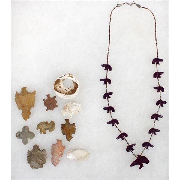 Native American Zuni Fishrock Horse Fetish by Lorvin Kiyite, measures 1'' x 1.5'', turquoise arrowhead spirit bundle, turquoise eyes