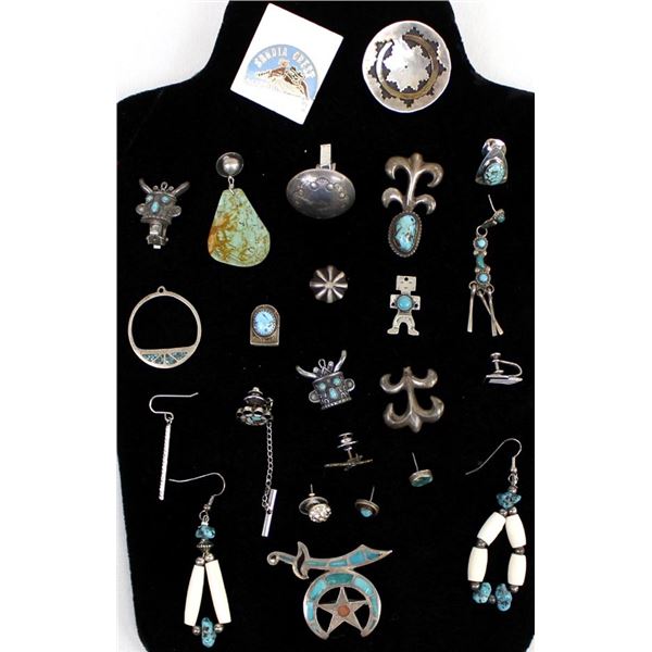 Beautiful Navajo Sterling Silver Inlay Earrings by Paula Armstrong, measures 1.5'' x 1'', stamped sterling and hallmarked, inlay of ...