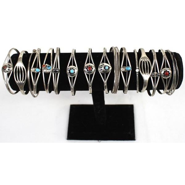 16 Bracelets, Most are Native American Navajo, inside measurements range from 4'' to 5.5'', includes turquoise, coral, hematite, ste...