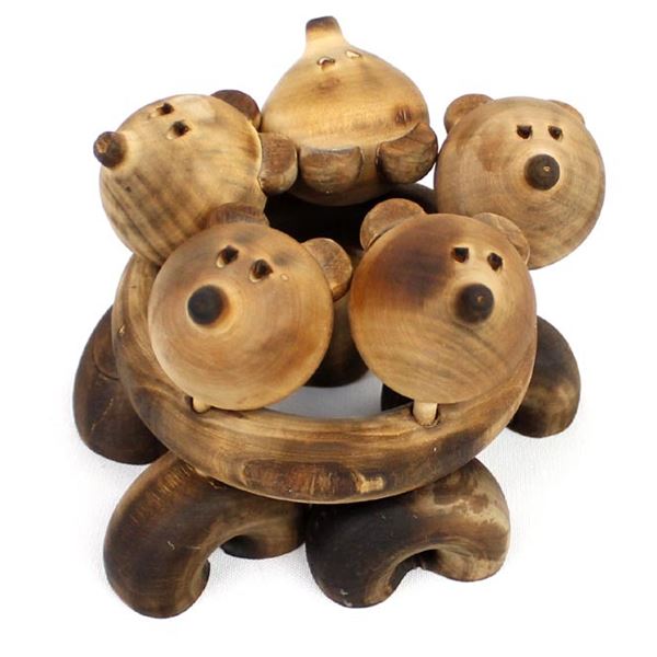 Croatian Carved Wooden Bear Pottery Stand, measures 5'' x 5'' x 4.5'' and has original tag on the bottom