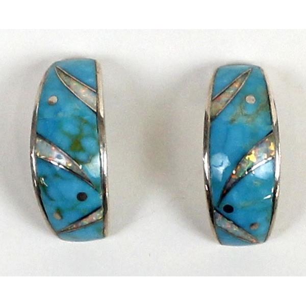 GL Miller Studios Inlay Turquoise & Opal Earrings