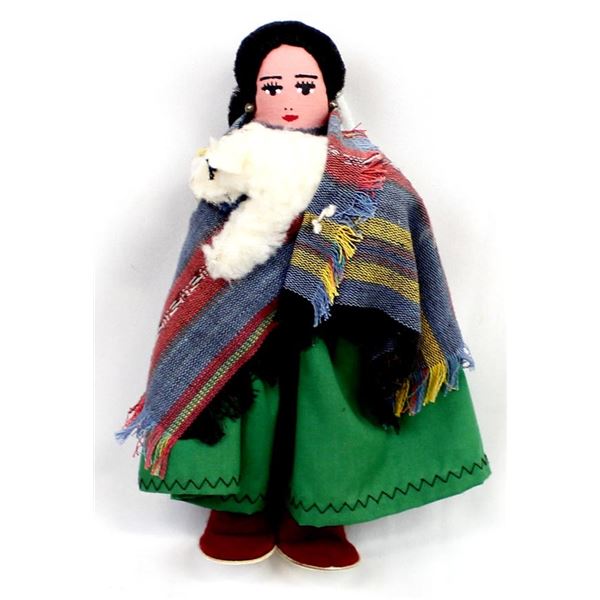 Navajo Cloth Doll Girl with Her Pet Lamb, measures 3 x 4 x 7''. Doll is like new condition.