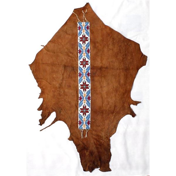 Native American Plains Indian Beadwork on Tanned Leather measures 24 x 42'' . Beadwork measures 27 1/2'' x 3'' W