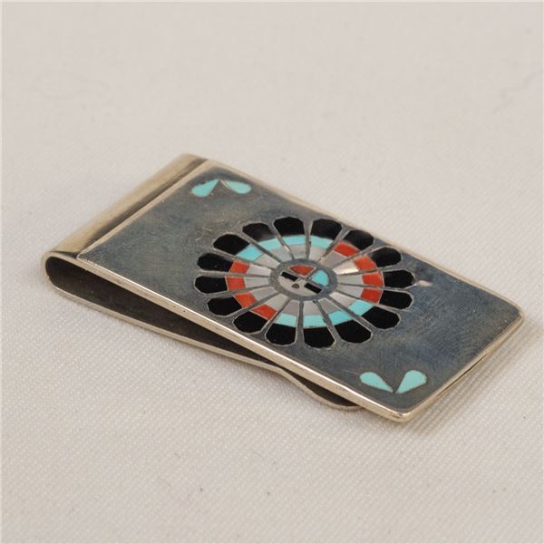 Channel Inlay Key Ring, inlay piece measures 1'' x 1.5'', includes turquoise, jet, shell, and charoite