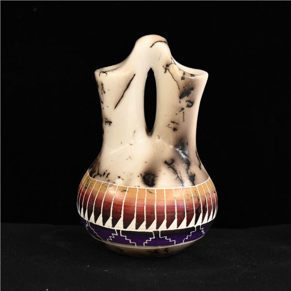 Native American Navajo Incised Ceramic Pottery Wedding Vase, measures 3.5'' x 5'' and is signed on the bottom, Knifewing Mountains m...