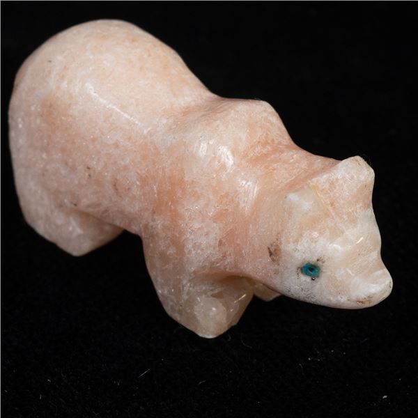 Native American Zuni Orange Alabaster Bear Fetish, measures .25'' x .5'' x 1.5'', turquoise eyes