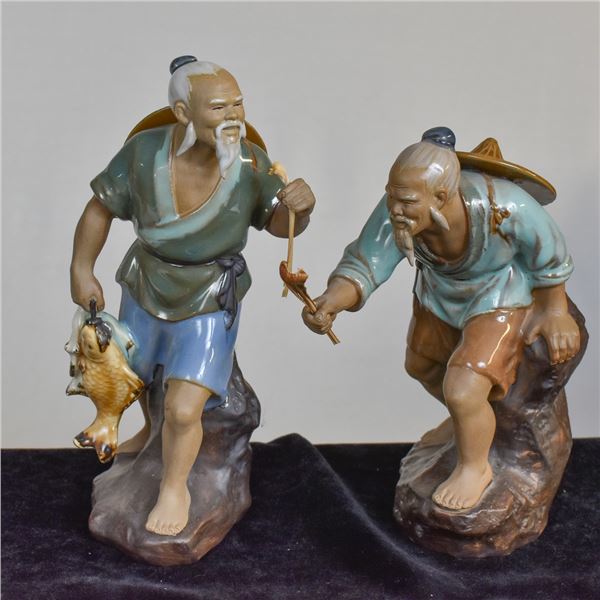 2 Chinese Porcelain Mud Men Figurines, largest measures 8.5''H x 4.5''W x 4''Deep, marked on the bottom