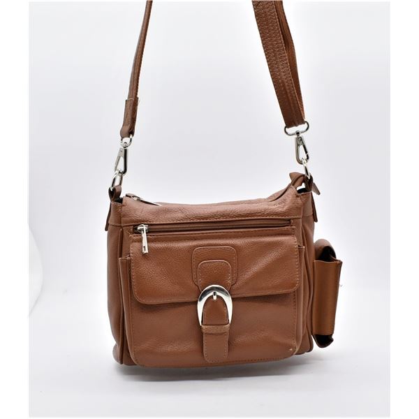 Roma Leather Conceal Carry Purse, slight corner wear on bottom edges of purse, adjustable shoulderstrap, comes with 2 keys, measures 12.5''L...