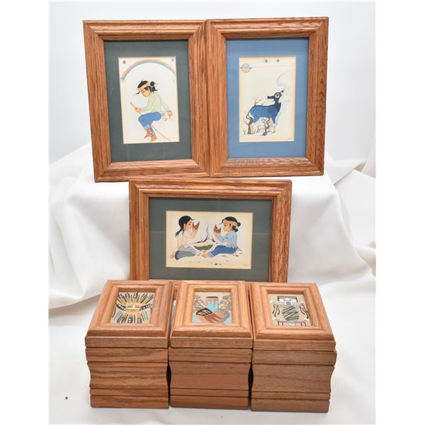Native American Collectibles, includes 1. Three Native American Navajo Sand Painted Wood Boxes, all are signed, measure 3'' x 3.75''...