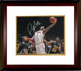 Deshaun Thomas played NCAA Basketball at Ohio State for 3 years. On 2/18/2012, Thomas recorded his first career double-double, leading the Buckeyes with 25 points and 13 rebounds in a Big Ten road loss at Michigan. At the conclusion of the regular season in which Thomas started in all 31 of the Buckeye games, Deshaun was honored by being named to the Coaches' 2nd Team All Big-10. He was also selected to the 3rd Team in a vote by the media. On 3/15/2012, Thomas had one of the best games of his career. In the 2nd round of the NCAA Tournament, Deshaun led the Buckeyes to a 78-59 victory over Loyola (MD). In that game, Thomas was the leading scorer with a career-high 31 points, and he also led the game with 12 rebounds. Deshaun Thomas has hand signed this Ohio State Buckeyes 8x10 Photo. Private Signing in Lima, OH on April 13, 2013. Certificate of Authenticity from Athlon Sports. Custom White Mat and Premium Mahogany Frame as shown.