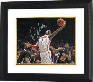 Deshaun Thomas played NCAA Basketball at Ohio State for 3 years. On 2/18/2012, Thomas recorded his first career double-double, leading the Buckeyes with 25 points and 13 rebounds in a Big Ten road loss at Michigan. At the conclusion of the regular season in which Thomas started in all 31 of the Buckeye games, Deshaun was honored by being named to the Coaches' 2nd Team All Big-10. He was also selected to the 3rd Team in a vote by the media. On 3/15/2012, Thomas had one of the best games of his career. In the 2nd round of the NCAA Tournament, Deshaun led the Buckeyes to a 78-59 victory over Loyola (MD). In that game, Thomas was the leading scorer with a career-high 31 points, and he also led the game with 12 rebounds. Deshaun Thomas has hand signed this Ohio State Buckeyes 8x10 Photo. Private Signing in Lima, OH on April 13, 2013. Certificate of Authenticity from Athlon Sports. Custom White Mat and Premium Black Frame as shown.