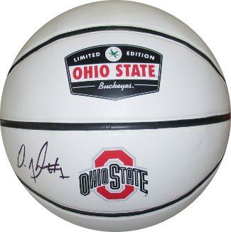 Deshaun Thomas played NCAA Basketball at Ohio State for 3 years. On 2/18/2012, Thomas recorded his first career double-double, leading the Buckeyes with 25 points and 13 rebounds in a Big Ten road loss at Michigan. At the conclusion of the regular season in which Thomas started in all 31 of the Buckeye games, Deshaun was honored by being named to the Coaches' 2nd Team All Big-10. He was also selected to the 3rd Team in a vote by the media. On 3/15/2012, Thomas had one of the best games of his career. In the 2nd round of the NCAA Tournament, Deshaun led the Buckeyes to a 78-59 victory over Loyola (MD). In that game, Thomas was the leading scorer with a career-high 31 points, and he also led the game with 12 rebounds. Deshaun Thomas has hand signed this Ohio State Buckeyes Rawlings Logo Basketball. Private Signing in Lima, OH on April 13, 2013. Certificate of Authenticity from Athlon Sports.