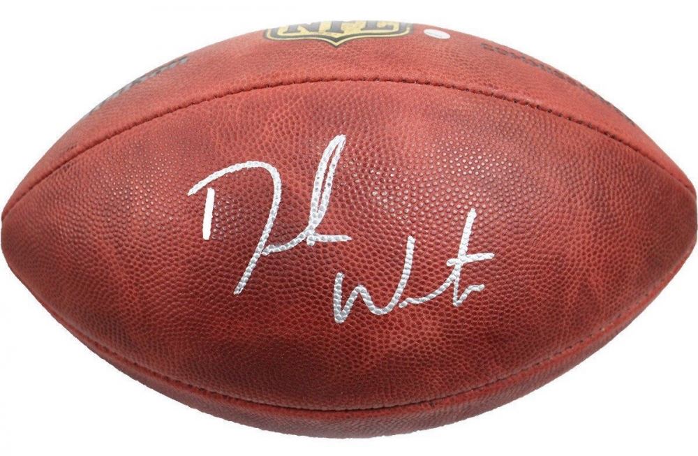 NFL full-size football has been hand-signed in silver paint-pen by Deshaun Watson (Texans).