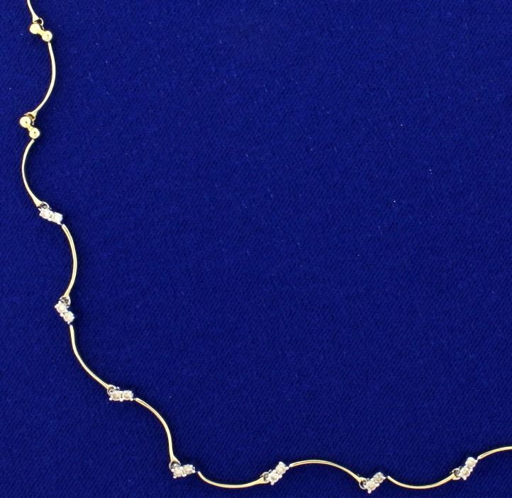In 14k yellow gold. Contains twenty two round high quality champagne diamonds with warm color and excellent clarity. 17" long with lobster clasp. 10.3g.