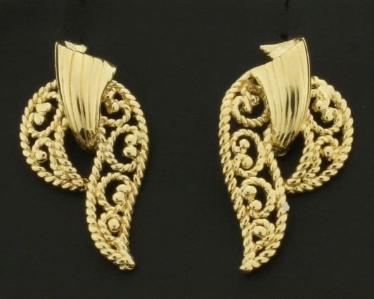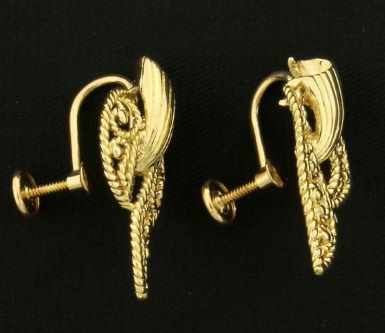 In 14k yellow gold. Fantastic workmanship and design. 1" long with screw backs. 4.3g.
