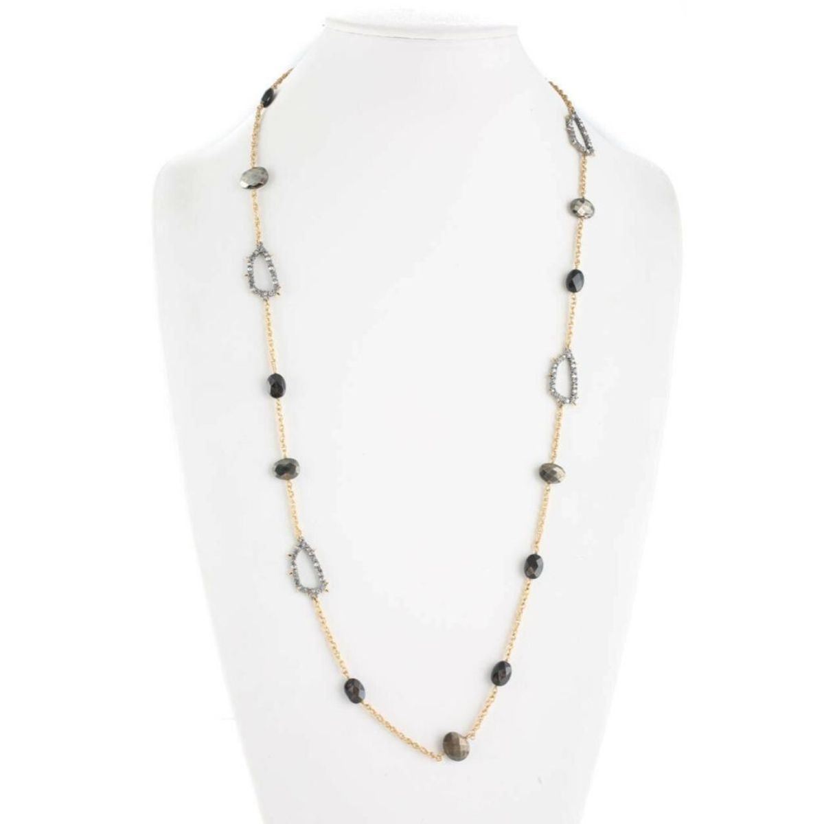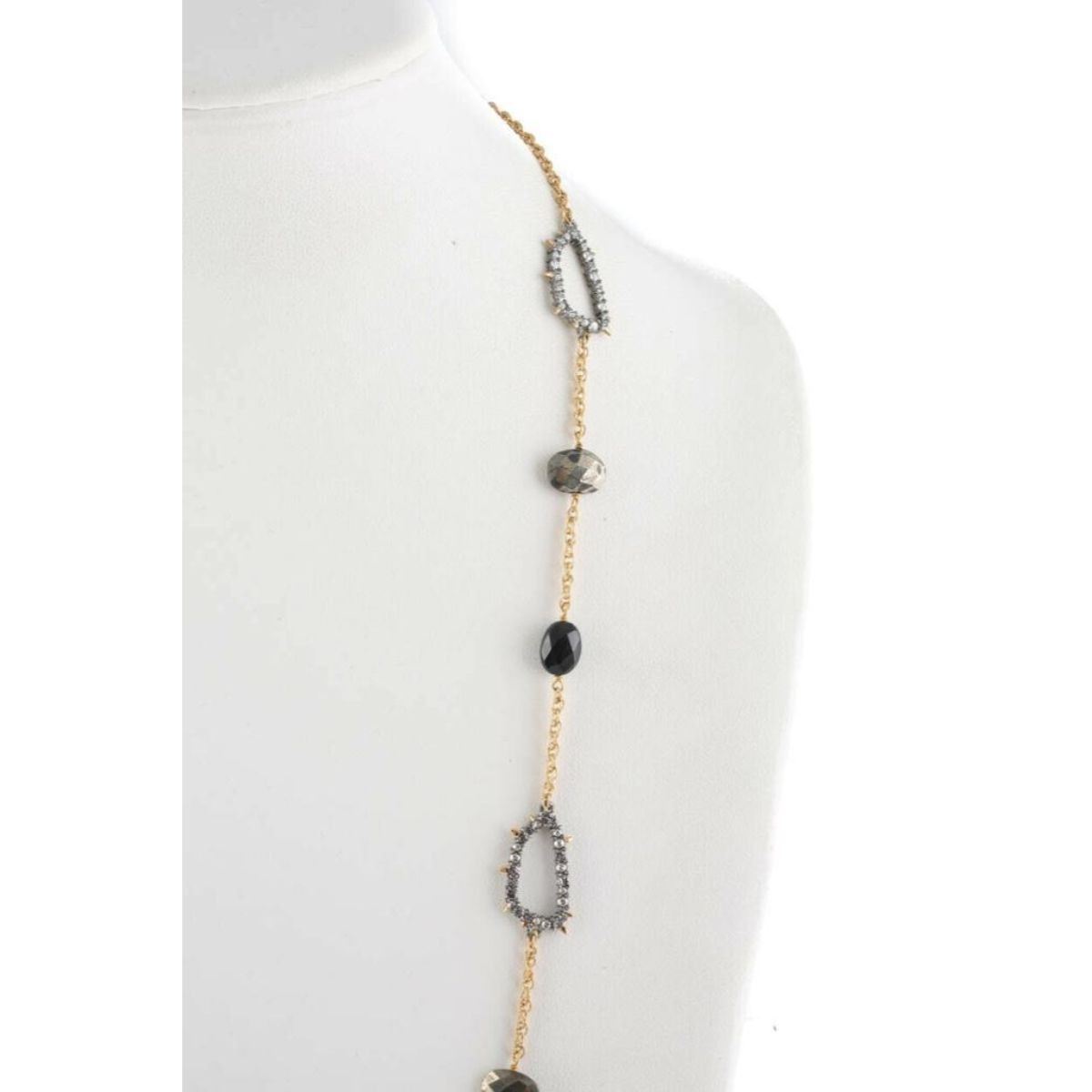 Designer Alexis Bittar 18" station necklace, gold tone with crystals. Alexis Bittar designer tag.