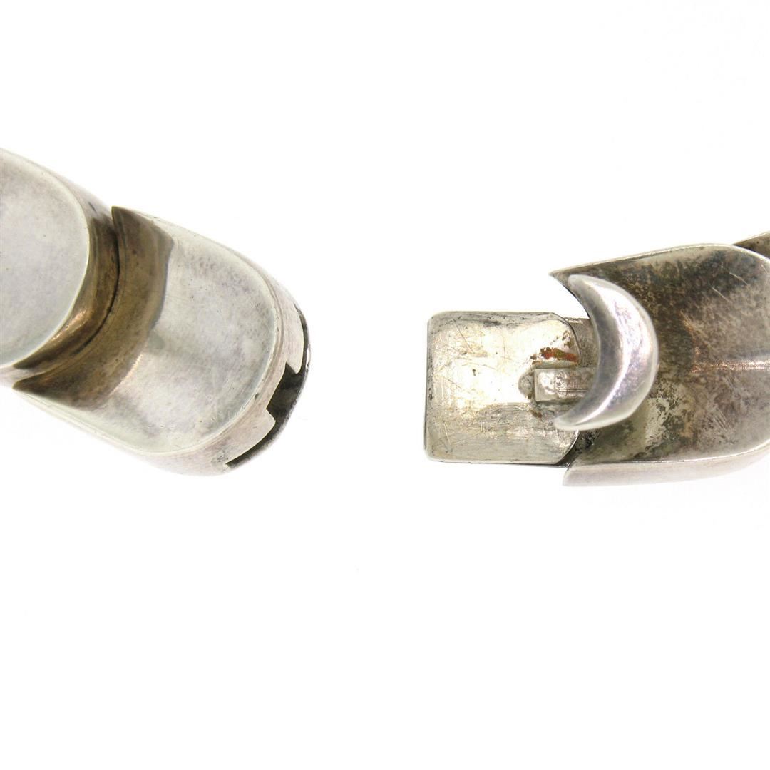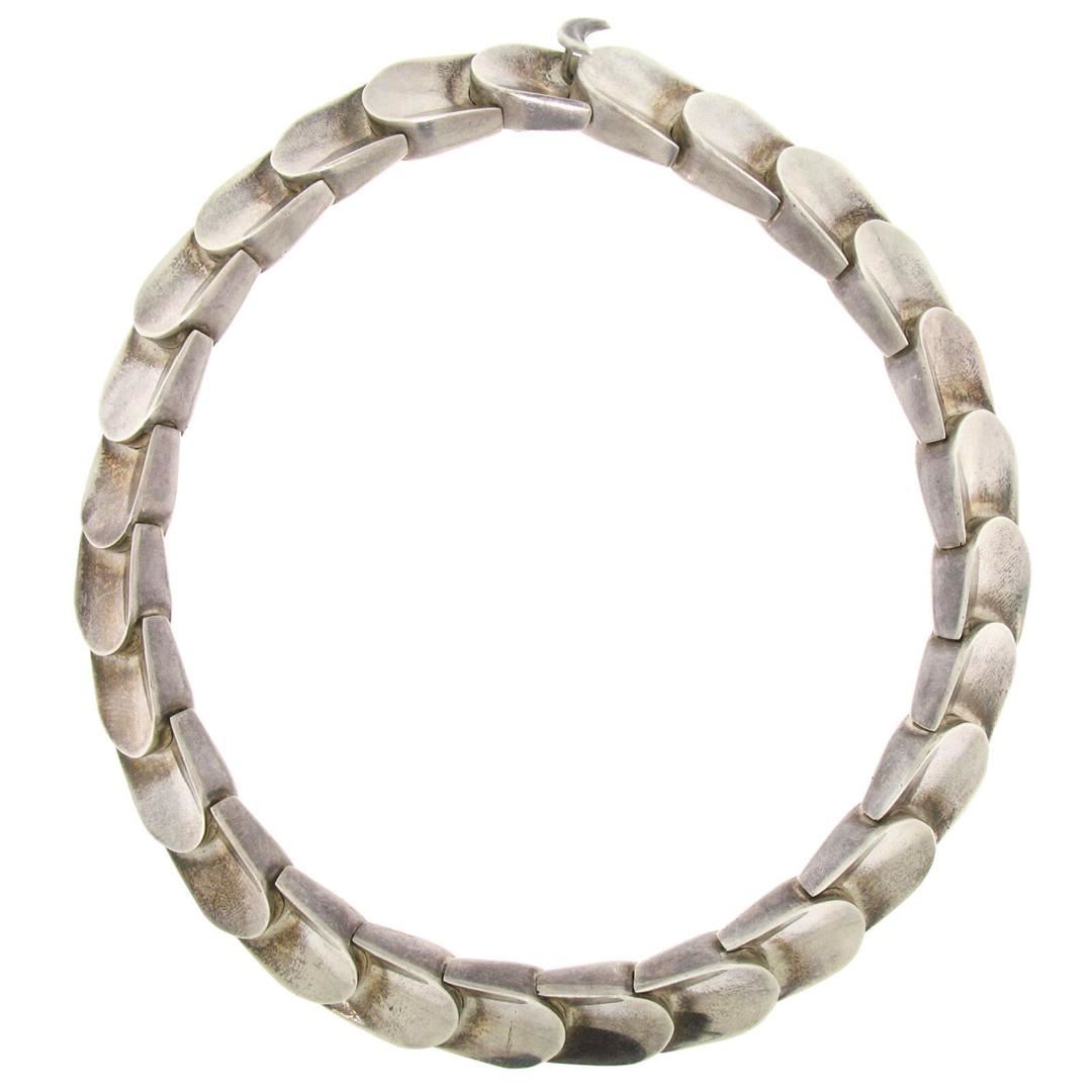 One Designer Alicia Mexico Solid .970 Silver Wide Scalloped Grooved Choker Necklace. Item Details: Material: Solid .970 Silver, Weight: 133.0 Grams, Chain Length: 13.5 Inches, Chain Width: 15.5mm, Chain Thickness: 6.5mm, Clasp: Box Clasp, Condition: Shows minimal tarnishing - Overall excellent, ready to wear condition!