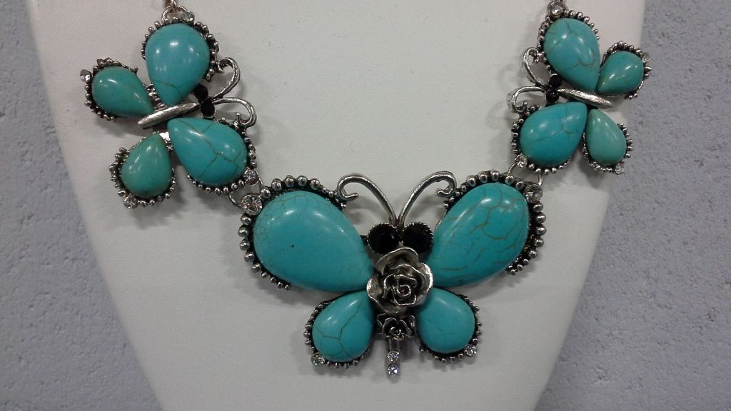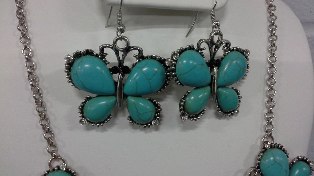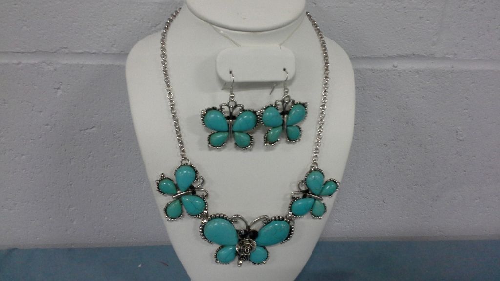 Designer Butterfly Necklace and Earrings With Turquoise Like Resin Stones
