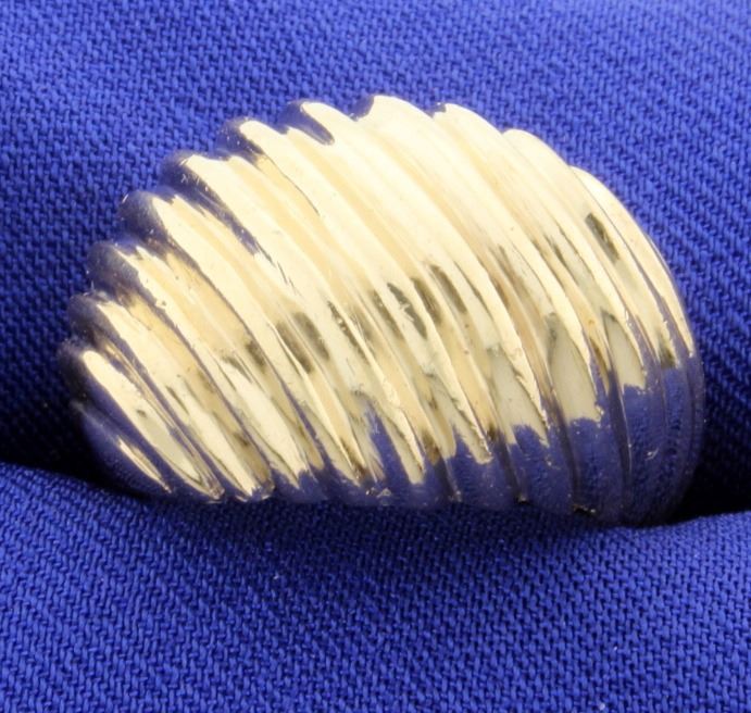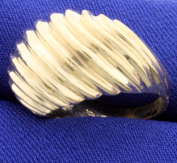In 10K yellow gold, it is a size 7 3/4. 8.9g