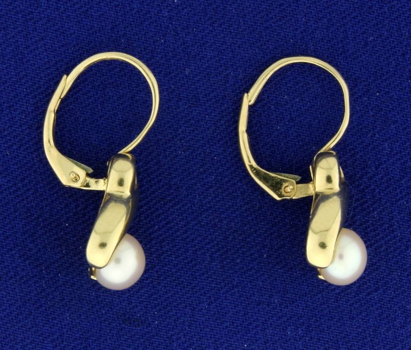 In 14k yellow gold. 1" long with kidney backs, and 6mm pearls.3.4g.