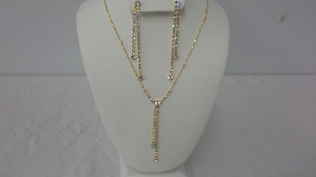 Designer Gold Plated Necklace and Earrings With Clear Swarovski Crystals