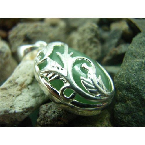 <tr><td>Title:Designer Jade Flower Sterling Silver Pendant</td></tr>