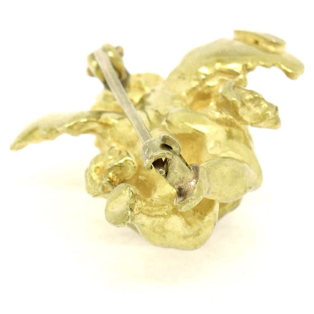 Designer Koven 18K Yellow Gold 3D Textured Cherub Angel Brooch Pin Heavy 20.08g