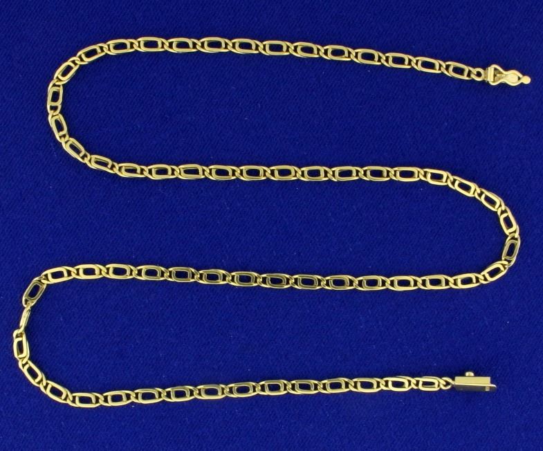 In 18K Yellow Gold. 3mm wide, with safety clasp. Matches Lot 8430 (bracelet) 8.8g