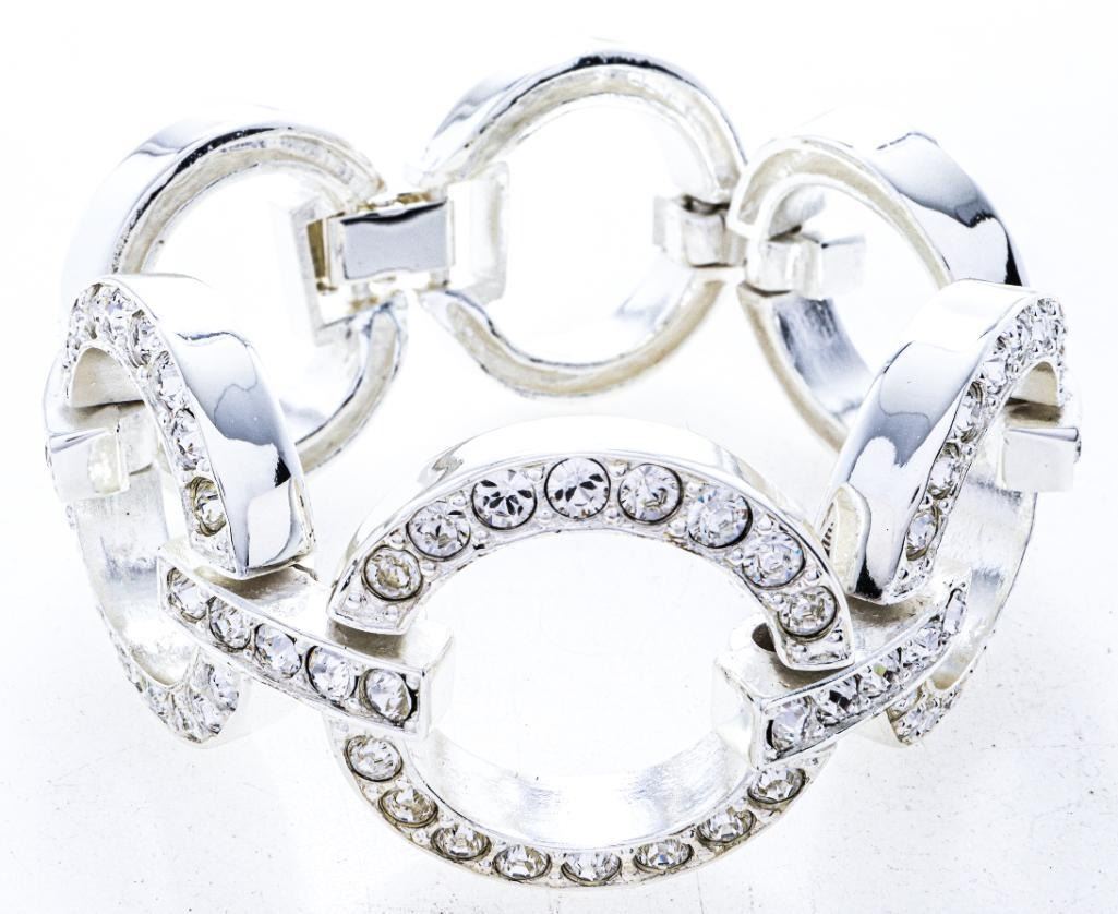 Designer MM Circle of Life Bracelet, Bead Set w/ Swarovski Elements, Foldover Clasp, 7" Long, Silver/Rhodium