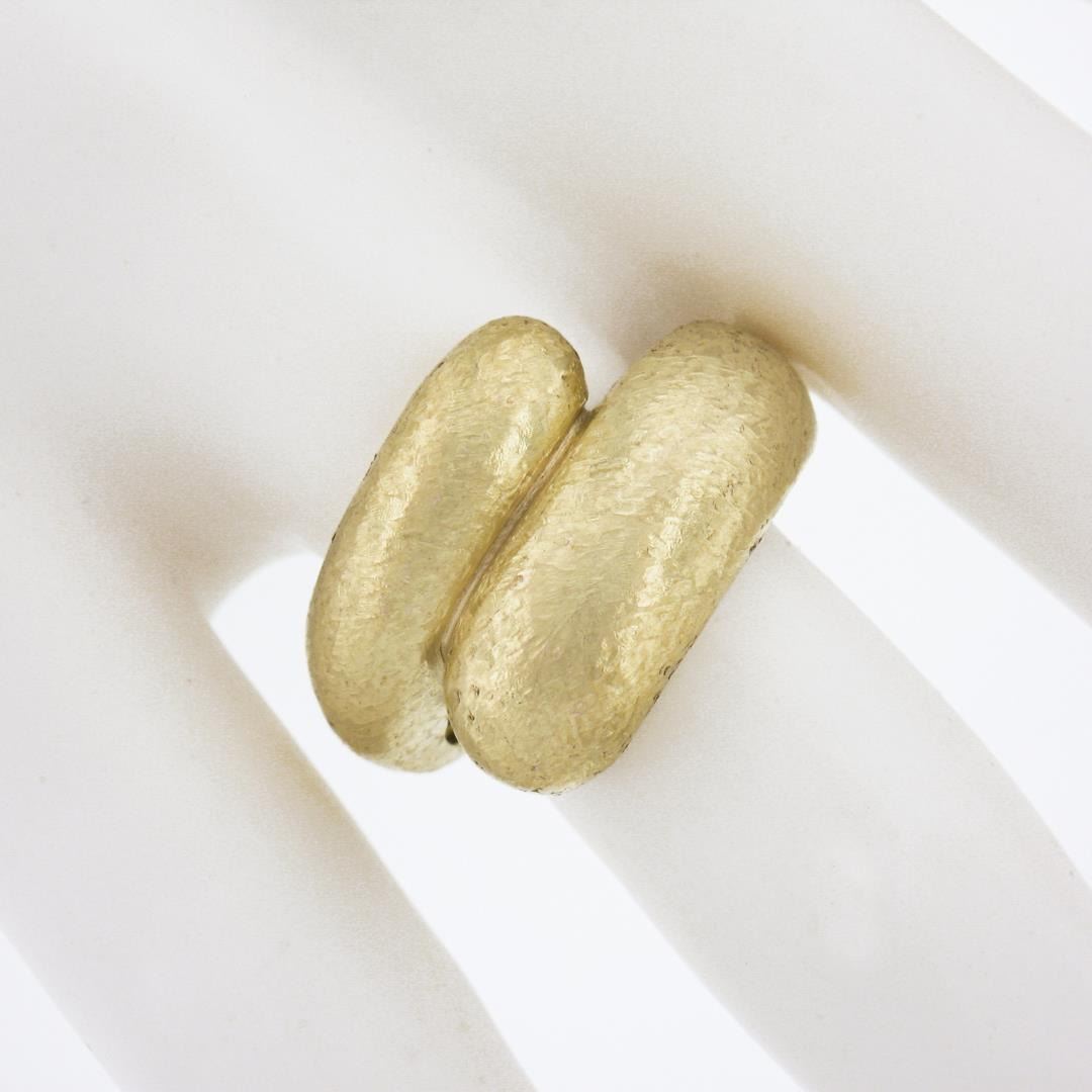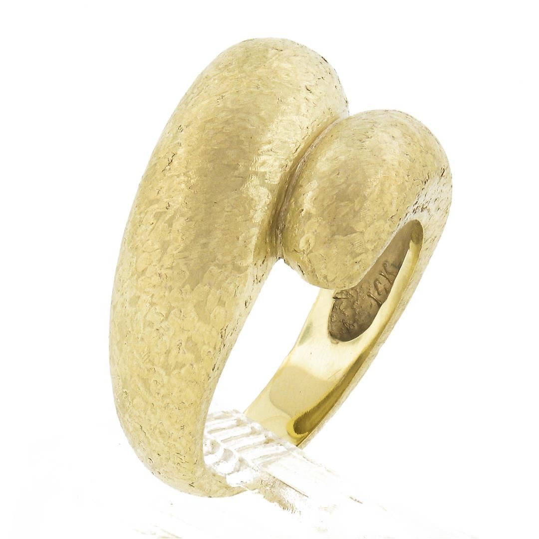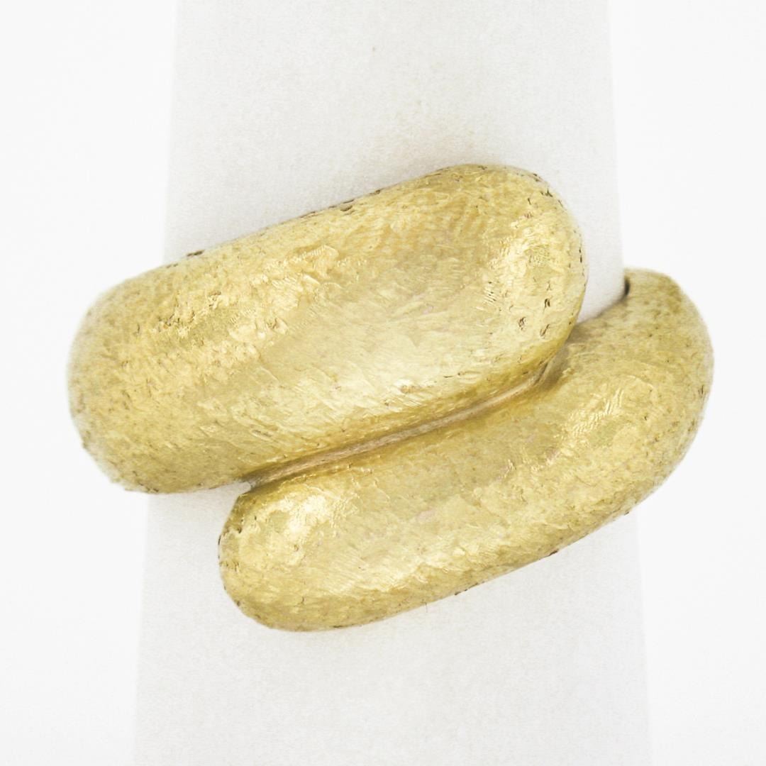 A solid 14k yellow gold bypass ring by MAZ. The ring is size 7.0, weighs a total of 10.40 grams, and measures 14mm wide.